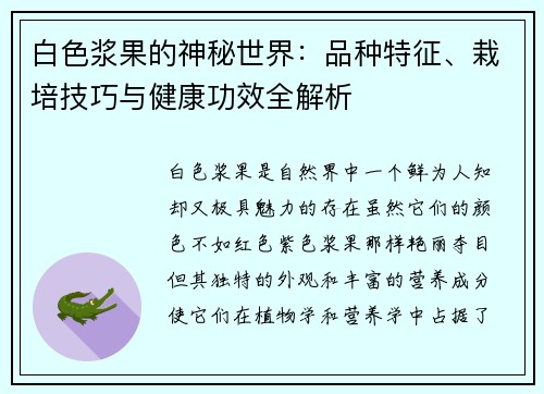 白色浆果的神秘世界:品种特征、栽培技巧与健康功效全解析